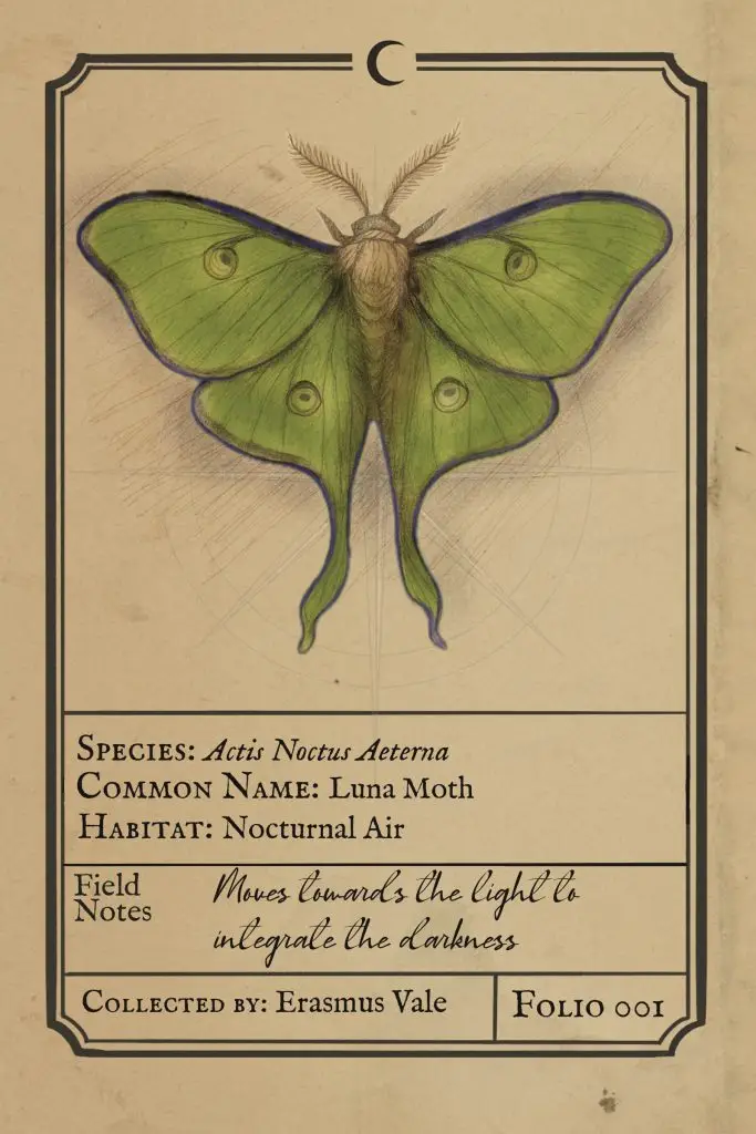The Metaphysical Series reimagines natural history through the lens of the metaphysical. Each sticker or altar card is presented like a collector’s specimen — labeled, cataloged, and carefully rendered — yet what it preserves is not bone or wing, but spirit. Moths, cicadas, fireflies, and other luminous beings are documented as if by a mystic biologist, revealing the hidden anatomy of wonder itself. Printed on archival stock with timeless restraint, these pieces invite quiet study — reminders that even the smallest creature can hold the light of an entire cosmos.