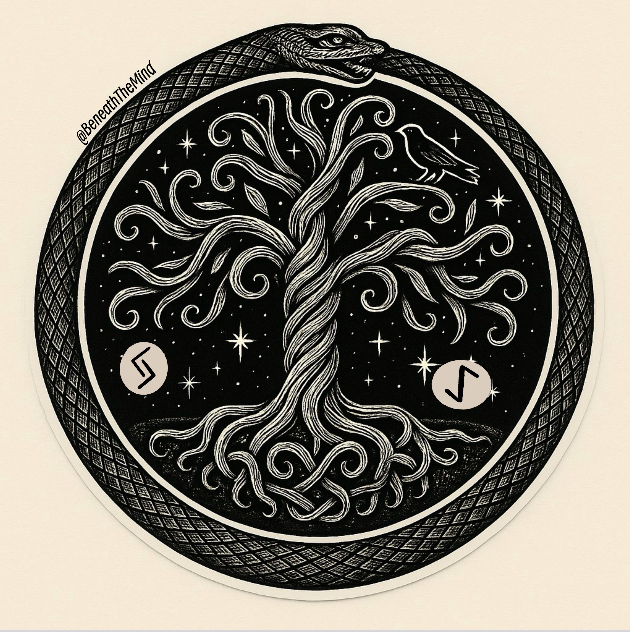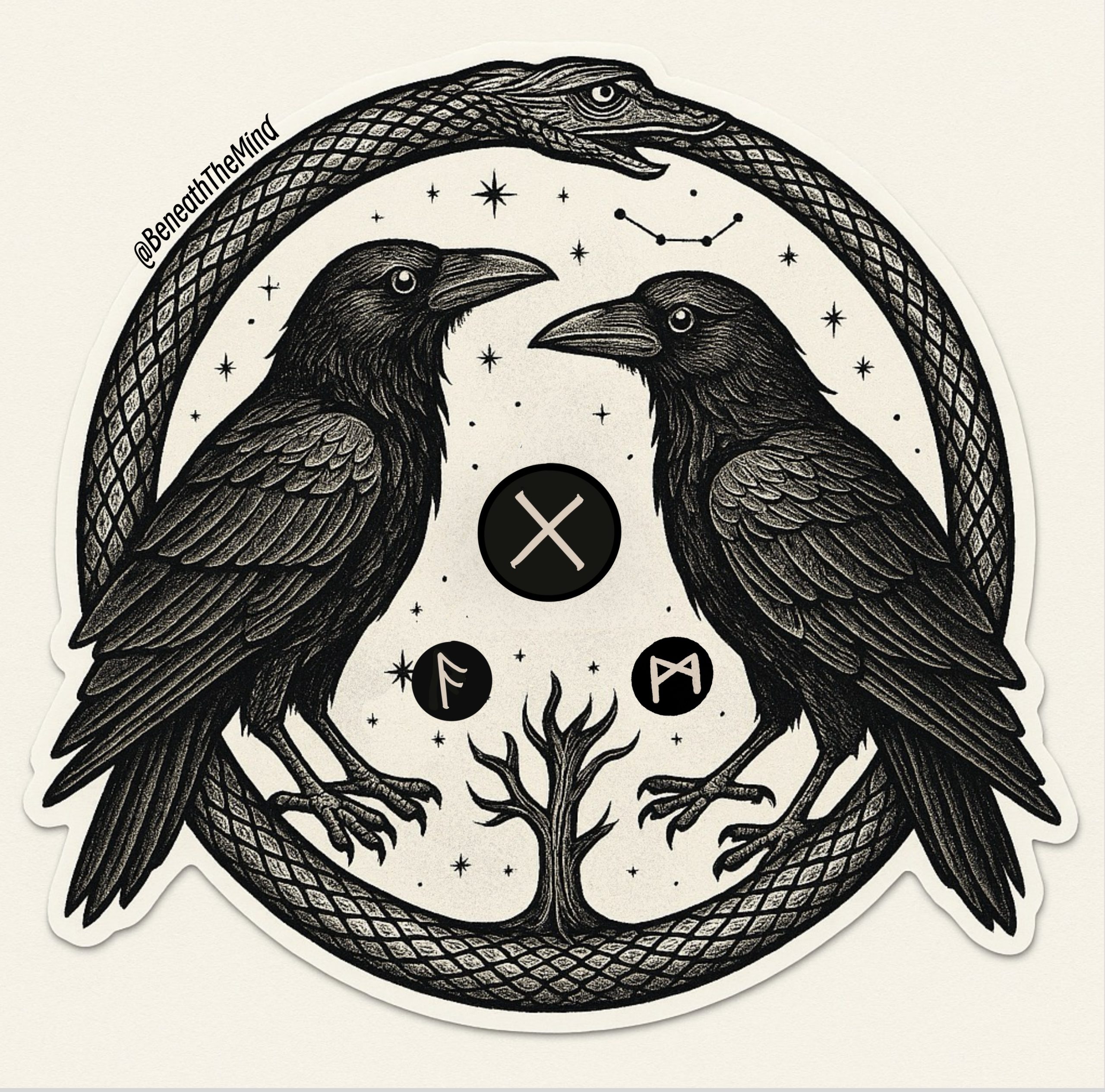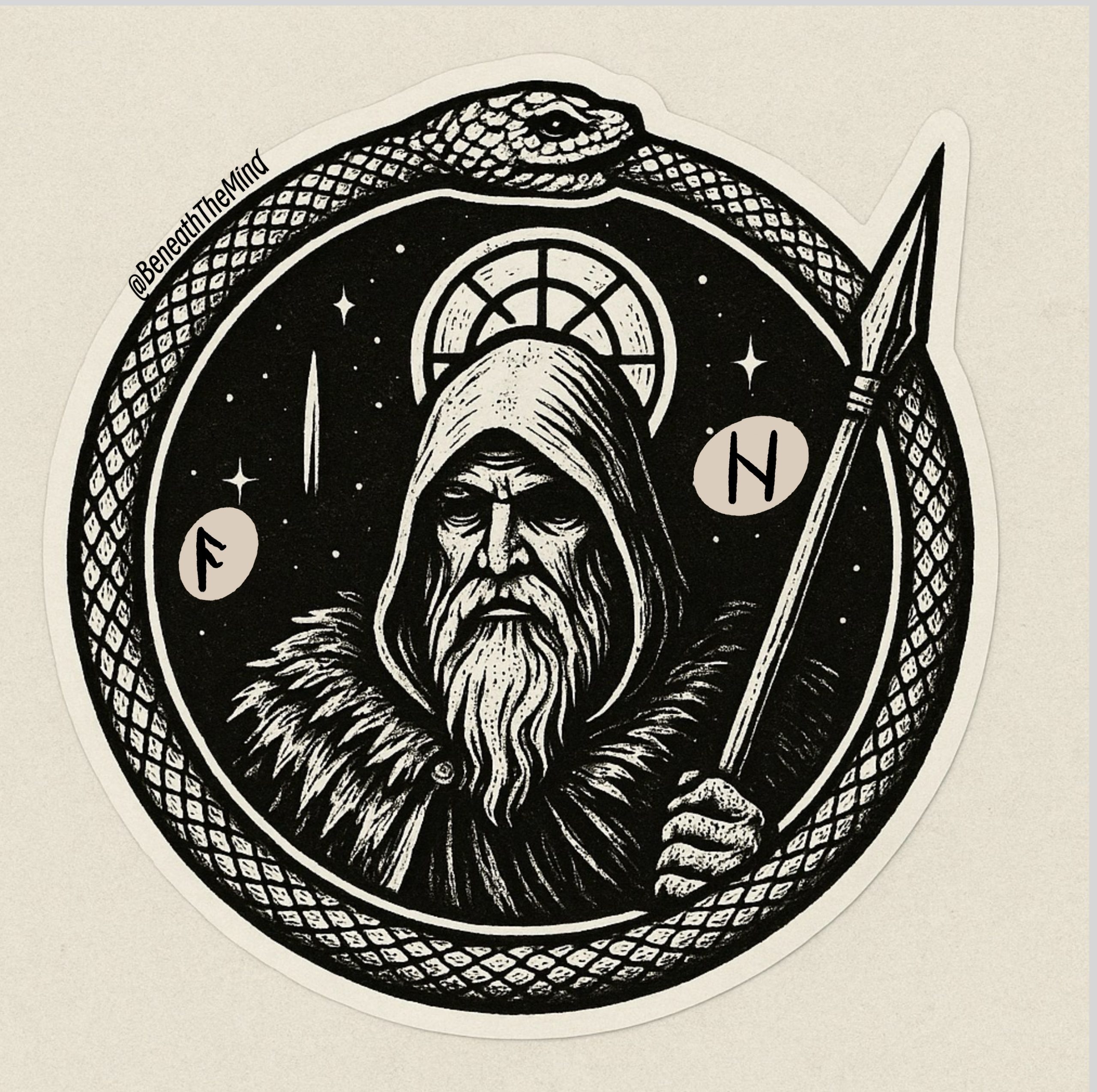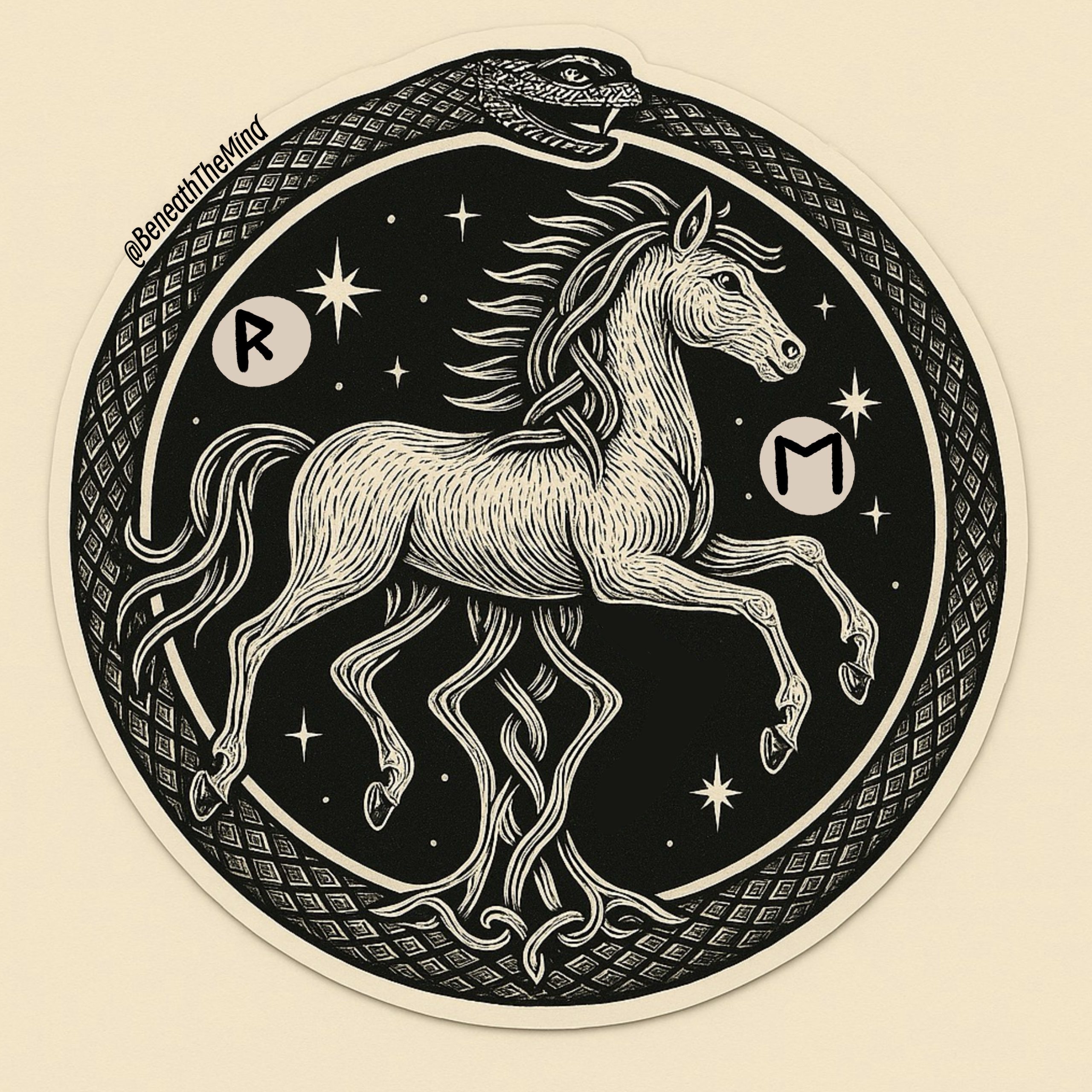 Rooted in the ancient language of the Elder Futhark, the Norse Series draws on the timeless symbols that once bound myth and meaning. Each piece — from die-cut vinyl sticker to altar card — carries a single rune as a point of meditation, rendered in stark black linework and wrapped in the Ouroboros. These designs speak of cycles, courage, and the quiet wisdom of the wild places. Whether placed on a journal, water bottle, or shrine, each work serves as a modern invocation — a reminder that what was sacred once, still is.